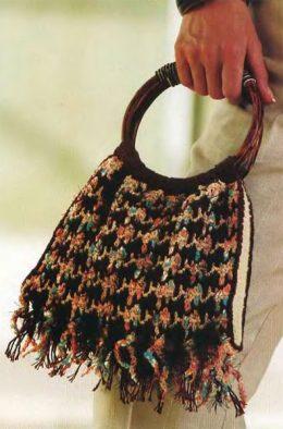 СУМОЧКА Низкая степень сложности. 100 г фантазийной шерстяной пряжи с добавлением вискозы зеленого цвета: крючок №4,5; донышко размером 37x12 см и ручка...