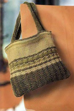 Две сумки: с вышивкой и узором «коса» (спицами) Материалы: 300 г х/б пряжи: 100 г бежевого цвета и 100 г зеленого цвета для сумки с вышивкой; 100 г бежев...