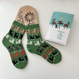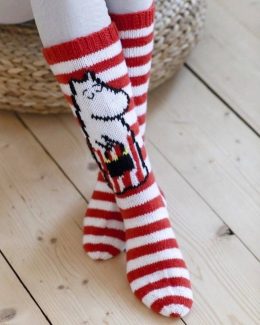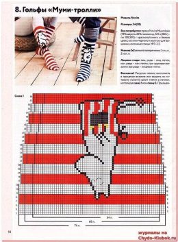 Эти замечательные носки выполнены в технике вязания спицами, сочетают в себе яркие сине-белые полосы и очаровательный рисунок с персонажем. Уникальная деталь —...