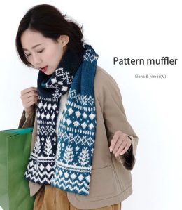 Эти шарфы выделяются своим сложным жаккардовым узором, который сочетает геометрические и растительные мотивы, создавая эффектный и теплый аксессуар для холодног...