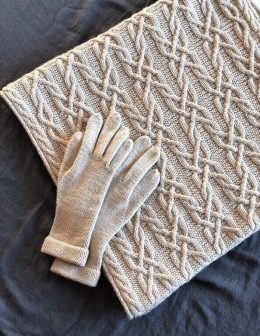 Очаровательный комплект из мягкой пряжи включает шарф с объемным узором косы и элегантные перчатки с аккуратной манжетой. Шарф выполнен с детальной вязкой, созд...