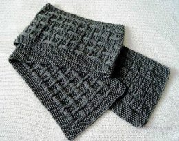 Этот шарф выполнен в технике вязания с объемным геометрическим рисунком, напоминающим кирпичную кладку, что придает изделию уникальную текстуру и глубину. Испол...