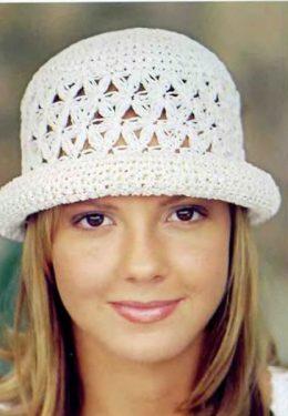 Вязаная спицами шапочка с широкими полями, связанными крючком. Окружность головы: 54-58 см. Пряжа: DROPS Karisma 100 г для обоих размеров цвет №13 светло...