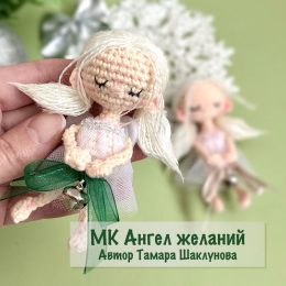 На крошечной голове этого ангела красуются закрытые глазки. Очаровательное кукольное создание в белоснежном платьице и с мохнатыми крылышками, держит в руках зе...