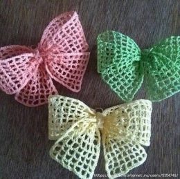 Приветствуем вас в мире вязаных чудес! Эти очаровательные ажурные банты, словно маленькие сети, ловят взгляды. В них сочетаются нежные пастельные оттенки и иску...