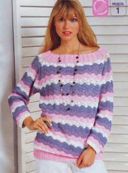 ПУЛОВЕР ИЗ ЗИГЗАГОВ вязание крючком Размеры: 38/40 (42/44) Вам потребуется: 200 г розовой пряжи Elastico (96% хлопка, 4% полиэстера. 160 м/50 г), по 150...