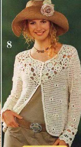 Ажурная кофта вязаная крючком Размер 40 Вам нужно 250 г тонкой акриловой пряжи фиолетового цвета, 150 г шелковой нити коричневого цвета, по 30 г шелковой...