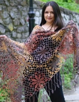 Отличная работа! Эта вязаная шаль крючком впечатляет своей красотой и мастерством. Градиентный переход от темных к светлым оттенкам создает эффект глубины и уни...