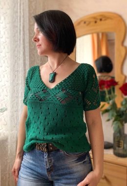 История вязания крючком уходит своими корнями в древние века, когда мастерицы создавали узоры путем переплетения нитей. Эта зелёная вязаная кофта удивительно со...