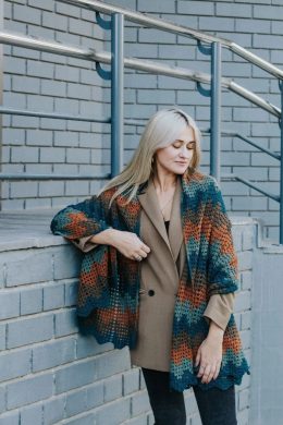 Каждая петля, как воспоминание о тепле и заботе. Этот жакет, связанный крючком, сочетает в себе разнообразные узоры и теплые оттенки, которые делают его поистин...