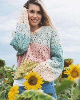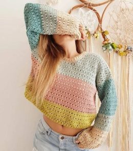 Готовы добавить яркие акценты в свой гардероб? Этот великолепный летний топ, связанный крючком, станет вашим любимым предметом в этом сезоне! Уникальный градиен...