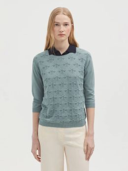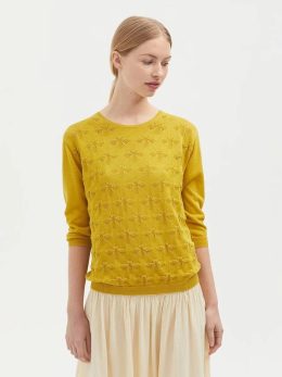 Легкий и дышащий материал делает её идеальным выбором для весенних и осенних дней, а аккуратный круглый вырез подчеркивает линию шеи. Пчелки.