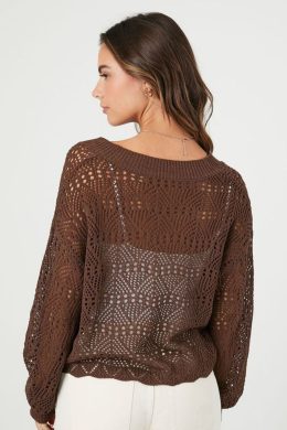 Этот пуловер привлекает внимание своим сложным ажурным узором и сетчатыми рукавами, создавая стильный и элегантный образ. Уникальный дизайн спинки с перекрещенн...