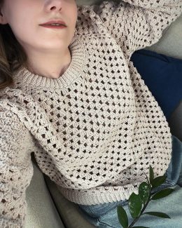Ощути легкость и воздушность с этим свитером из крупной сетчатой вязки, который идеально подойдет для теплых дней и создаст непринужденный образ. Уникальная фак...