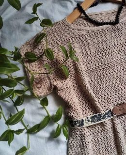 Уникальный узор из ажурных мотивов придает изделию воздушность и изящество, а сочетание нежных оттенков создает гармоничный образ. Короткие рукава и свободный к...