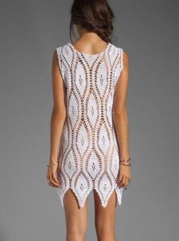 Простое шикарное платье и пуловер Размер: 36-38 Вам потребуется: пряжа «Мальва» (50% хлопок, 50% вискоза, 330 м/75 г) - 300 г белого цвета, крючок №2,5. Спинка:...