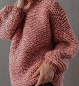 Теплый и уютный свитер крупной вязки из мягкой пряжи нежного розового цвета. Модель выполнена с выразительной фактурой «жемчужный узор», что придает изделию осо...