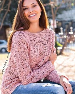 Изысканный узор из сквозных дорожек и мерсеризованная хлопковая пряжа придают пуловеру изумительный глянцевый оттенок, создавая весеннее настроение. Особенность...