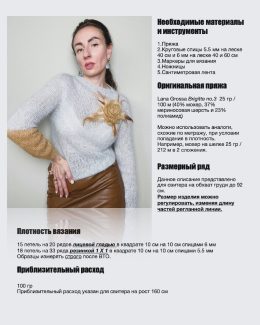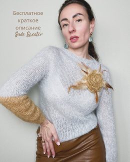 Этот свитер выполнен из мягкой пряжи с деликатным ажурным узором, который придаёт изделию лёгкость и воздушность. Модель с V-образным вырезом и слегка свободным...