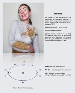 Обратите внимание на изящное расположение узоров по диагонали, которые визуально стройнят фигуру и создают динамичный эффект. Особенность модели — сочетание раз...