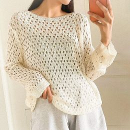 Этот вязаный пуловер станет вашим любимым спутником в прохладные дни! Легкая ажурная вязка придает ему воздушность, а нежный цвет добавляет романтичности. Идеал...