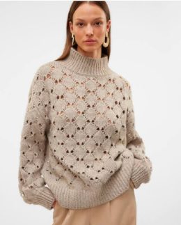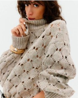 Уникальный ажурный узор добавляет изысканности и делает изделие особенным. Мягкая пряжа обеспечивает комфорт и стиль, а объемные рукава придают современный вид....