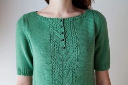 Этот вязаный спицами топ привлекает внимание своей изысканной ажурной вязкой, создающей легкую и воздушную текстуру. Особенность модели — короткие рукава с нежн...