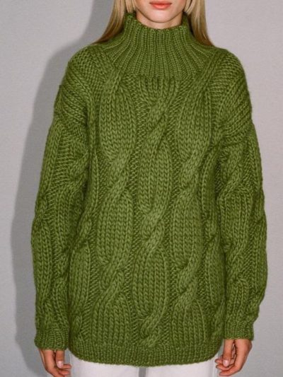 Этот свитер изумительного оливкового оттенка с объемной вязкой и уникальным рельефным узором станет настоящим акцентом вашего гардероба. Высокий воротник не тол...