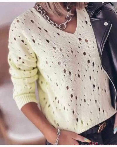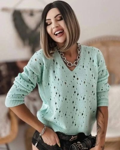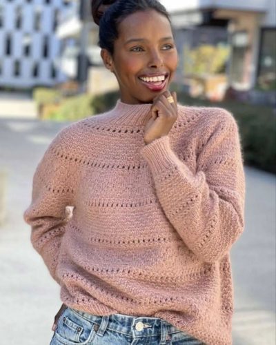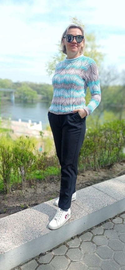 Уникальный узор с открытыми петлями придаёт изделию воздушность и стильный вид, а аккуратный воротник добавляет элегантности. Свитер отлично сочетается с джинса...