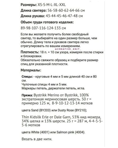 Его легкая текстура и сочетание нежных цветов делают его не только стильным, но и комфортным. Уникальный дизайн позволяет легко сочетать свитер с различными пре...