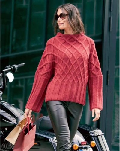 Широкие рукава добавляют изысканности, а насыщенный красный цвет отлично сочетается с различными нарядами, подчеркивая индивидуальность. Описание свитера с аран...