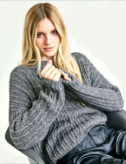 Описание рукодельного изделия спицами, с творческого всплеска. Этот стильный серый свитер выполнен в крупной вязке, что придаёт ему уютный и модный вид. Объемны...