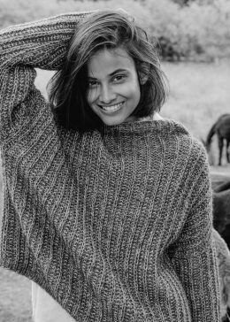 Этот стильный вязаный джемпер выполнен спицами из мягкой пряжи, что придаёт ему особое очарование. Фасон свободный и комфортный, позволяющий создать непринуждён...