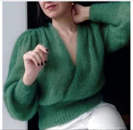 Этот уютный зеленый свитер с глубоким V-образным вырезом и рукавами "летучая мышь" настолько мягкий и пушистый, что захочется обнять себя дважды. Идеальный выбо...