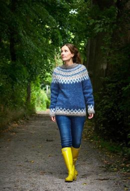 Этот уютный вязаный свитер с ярким жаккардовым узором в синих, серых и белых тонах согреет вас в самые холодные дни. Мягкая пряжа и традиционный скандинавский с...