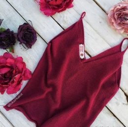 Асимметричный топ из меланжевой пряжи вяжется поперёк простой лицевой гладью. Такую вещь можно носить поверх! футболок и маек. Топ Размеры: S/M Вам потребуется:...
