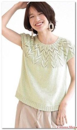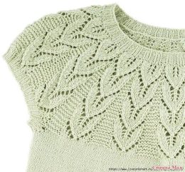 Футболка с красивой кокеткой из листьев связана из легкой летней пряжи. Пряжу по составу и цвету подбираем по своему желанию. Начинаем новый проект. Ничего слож...