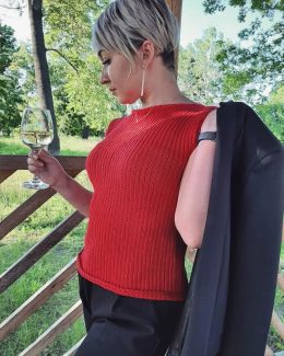 Погрузитесь в атмосферу роскоши с нашим элегантным вязаным топом "Красный вечер". Этот топ без рукавов, выполненный в насыщенном красном цвете, словно застывшем...