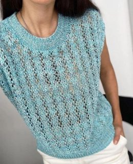 Привет, любители стильных и удобных вещей! Этот вязаный топ — словно лёгкий бриз в жаркий день, с оригинальными ажурными вставками по бокам и на груди, которые...