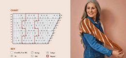 Этот шарф спицами сочетает в себе теплые полосы и нежное ажурное вязание, создавая уникальный контраст текстур. Оригинальный дизайн с переходом от плотного узор...