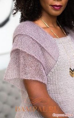 Спицами привет! Этот пуловер с V-образным вырезом и широкой резинкой по горловине — идеальный способ добавить легкое сияние в ваш гардероб. Модель с короткими р...
