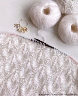 Спицами выполнена из тончайшей пряжи, создающей воздушную и легкую текстуру, а уникальный узор с листьями и волнистыми краями придает изделию изысканность и изя...