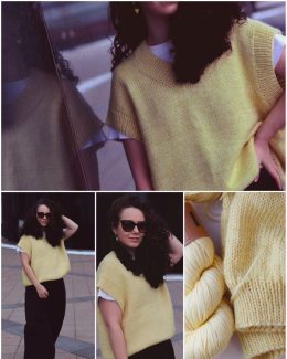 Этот вязаный спицами комплект — настоящее произведение искусства для тех, кто ценит утонченность и комфорт. Изящный глубокий V-образный вырез и короткие рукава...