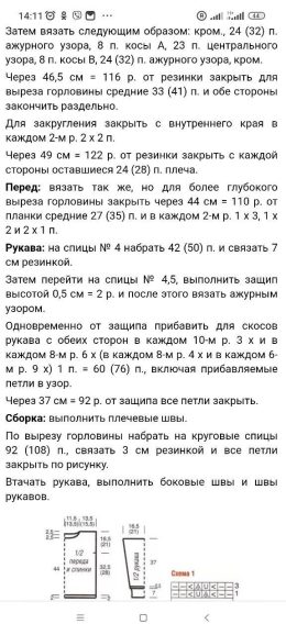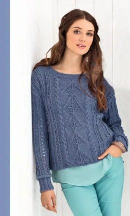 Этот стильный вязаный свитер с косами и ажурными вставками добавит изысканности вашему гардеробу. Его мягкая текстура и уникальный крой обеспечат комфорт и тепл...