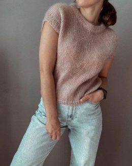 Уникальные детали, такие как короткие рукава и рельефный узор, делают его стильным выбором для любого гардероба. Джемпер с коротким рукавом спицами