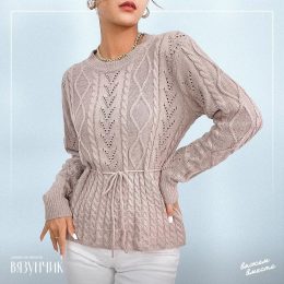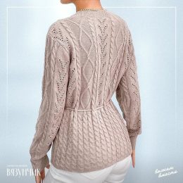 Этот вязаный свитер с изящными узорами и талией на завязках — идеальный выбор для стильного комфорта. Прекрасная комбинация кабелей и сетчатого плетения добавля...