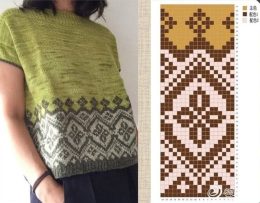 Этот стильный пуловер с коротким рукавом украшен изящным жаккардовым орнаментом. Вас порадует сочетание зелёного и белого цветов, создающее выразительный контра...