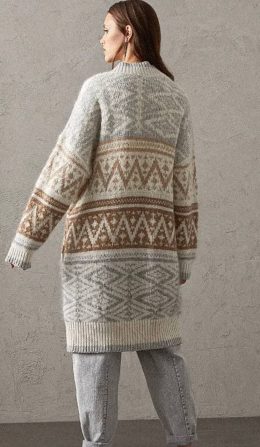 Этот уютный кардиган с богатым геометрическим узором словно приглашает в мир тепла и комфорта. Прекрасное сочетание натуральных оттенков и сложного орнамента де...