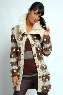 Вязаный кардиган спицами Размер 36/38 440 г коричневой и 210 г белой пряжи Musik Style Collection Rock (80% virgin wool, 15% nylon, 5% mettalic polyester, 47,5...