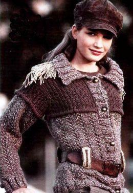 Кардиган с эполетами и шлевками в стиле Размер: 44. Вам потребуется: в общей сложности 900 г пряжи «Patons», из них: 650 г пряжи «Bonnie» цвета каштаново...